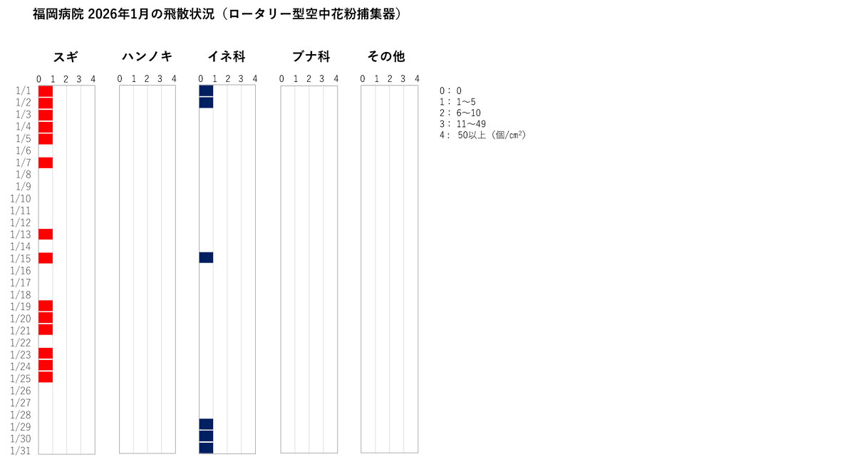 ホーム 5月~1月 花粉情報 (NHO福岡病院) 5月~1月 花粉情報 (NHO福岡病院) 5~6月のイネ科の花粉情報の詳細は 福岡県医師会ホームページ に掲載しています。 2025年度 2024年度 2023年度 2022年度 2021年度 2025年度 掲載期間:2025年5月~2026年1月 2024年度 掲載期間:2024年5月~2025年1月 2023年度 掲載期間:2023年5月~2024年1月 2022年度 掲載期間:2022年5月~2023年1月 2021年度 掲載期間:2021年10月~2022年1月 ※2021年9月以前のデータは掲載しておりません、あらかじめご了承ください。 eラーニングシステム研修用動画 医療従事者向け研修用動画です 福岡病院 花粉情報センター 現在の飛散状況は以下のリンクで確認できます。この飛散情報は、当院で更新しています。